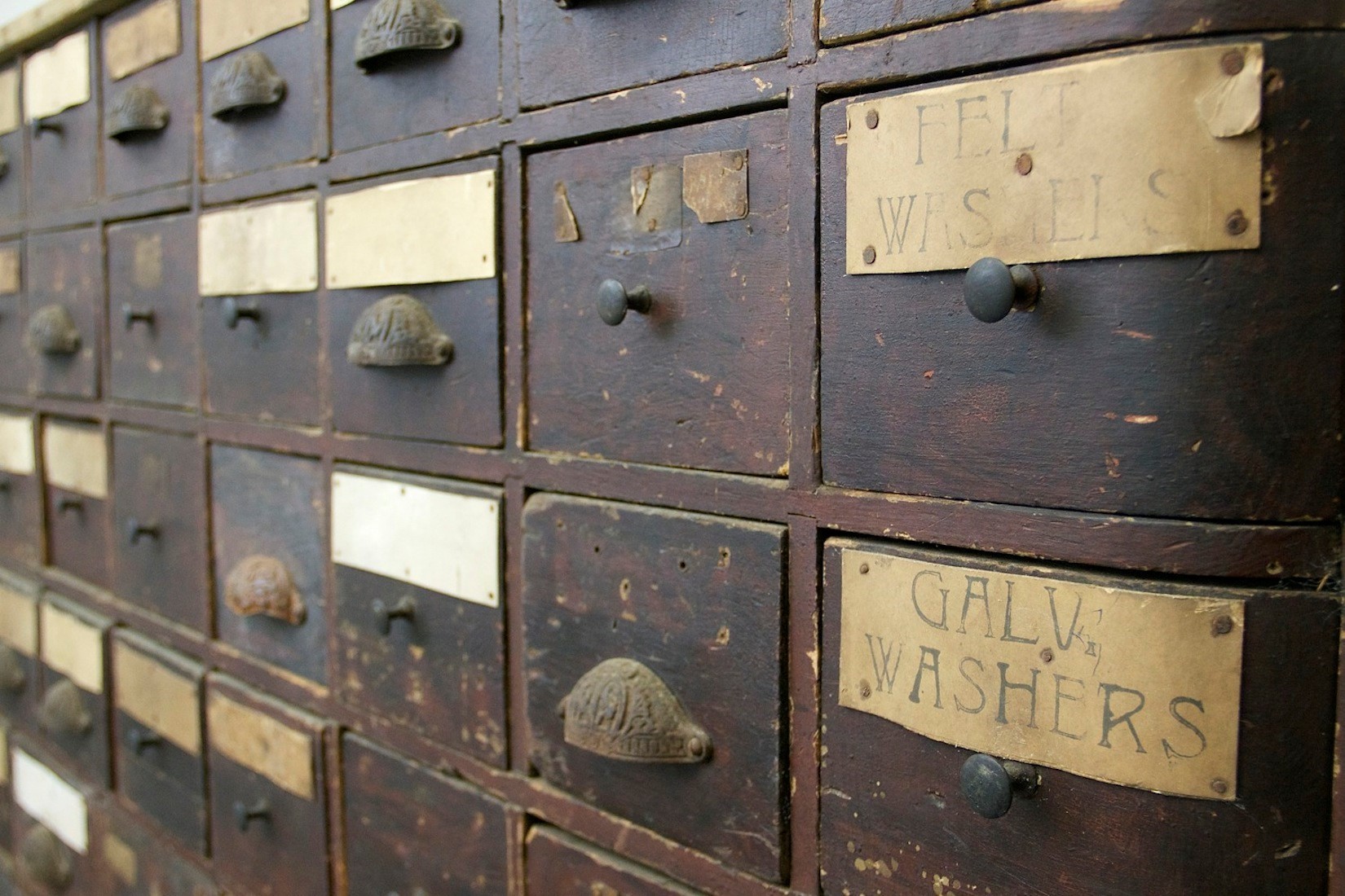 An interesting C19th bank of drawers with a curved end. English c.1880.