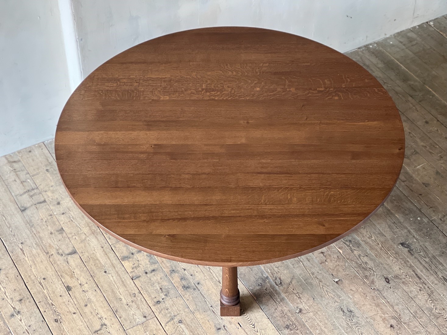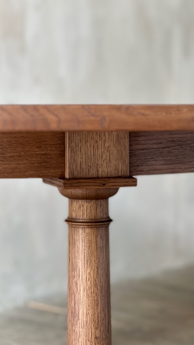 The dark fumed finish gives the finished table an air of age and permanence.