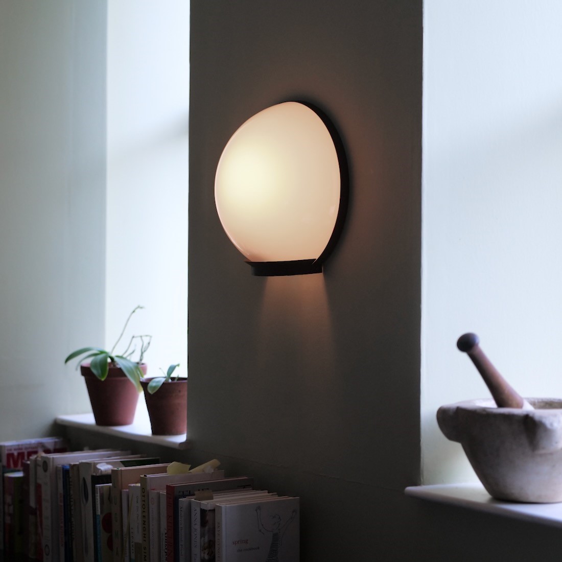 One of the delights of having our own workshop is the ability to come up with ideas and realise them as a team. We love antique milk glass and wanted to bring white glass to our own lighting.